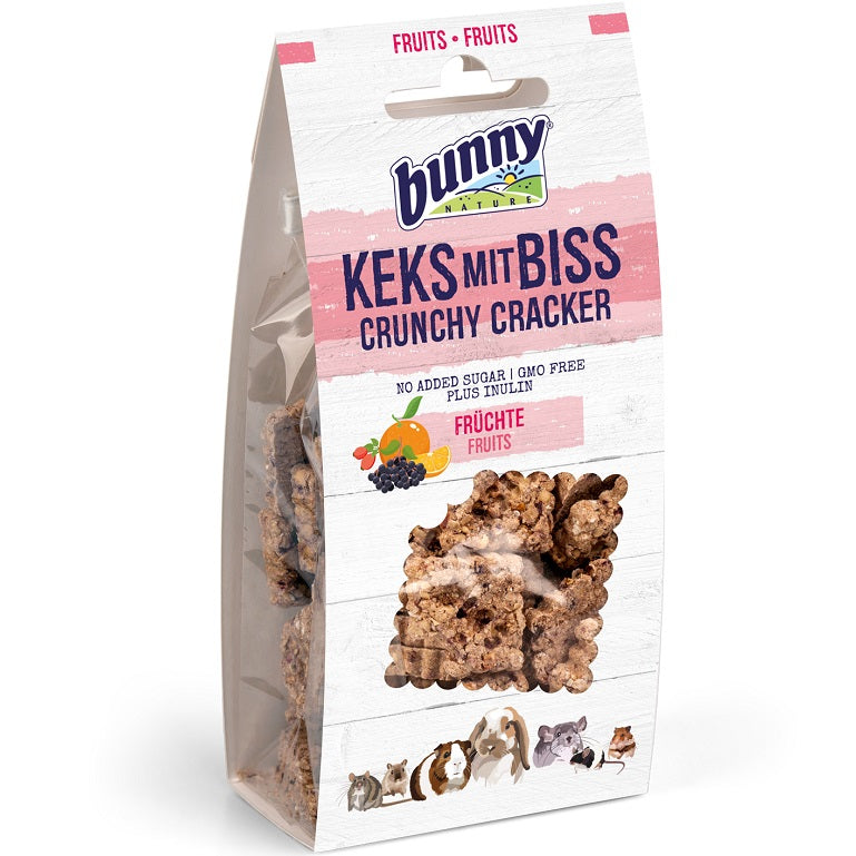 | Supplementary food for rabbits, guinea pigs, chinchillas, hamsters, mice, gerbils & rats. Crunchy Cracker contain valuable inulin. It effectively provides the regulation of blood sugar level and stabilises the intestinal flora. It's the exquisite selection of fruits that does it! A favourite Crunchy Cracker which makes them want more. Size: 50g |