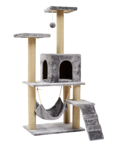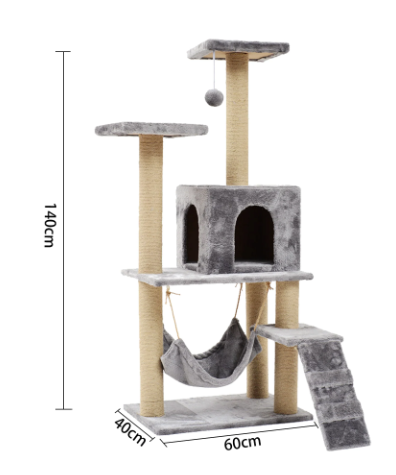 Elevate your feline friend's playtime and relaxation with our Large Cat Tree with Hammock Sisal Scratcher. This versatile cat tree offers multiple levels and features to keep your cat entertained and comfortable throughout the day.