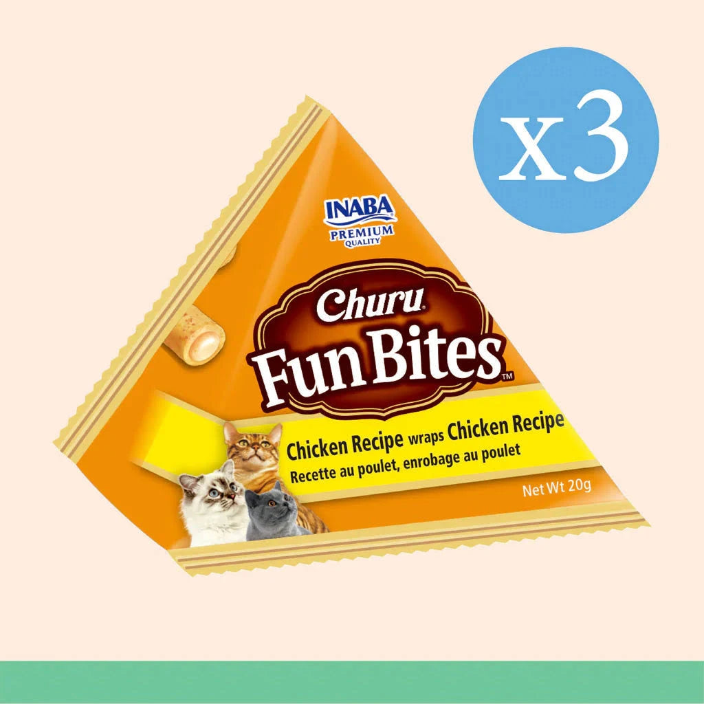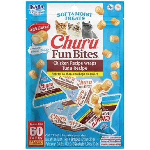 TWICE THE TEXTURE: Each pillow-shaped bite starts with a soft baked chicken paste with no grains, preservatives, carrageenan, or artificial colors. Then we've filled the centers with Inaba's delicious Churu filling to give your cat twice the texture