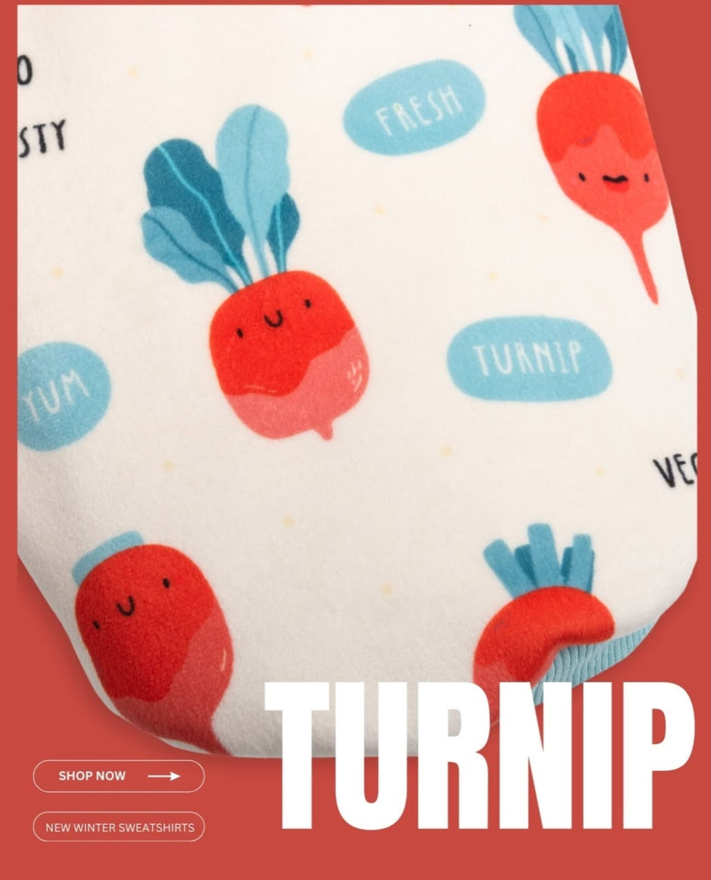 The quirky turnip print adds a fun, down-to-earth vibe, perfect for pups who like to keep things fresh.