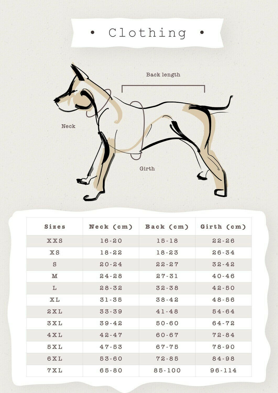 Available sizes (for sizing suggestions please check our size table)