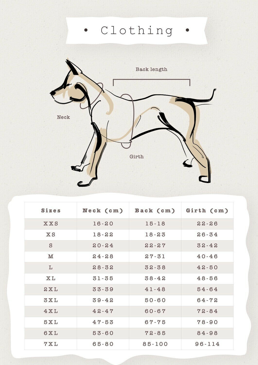 - XXL: Neck 33-39, Girth 54-64, back 42