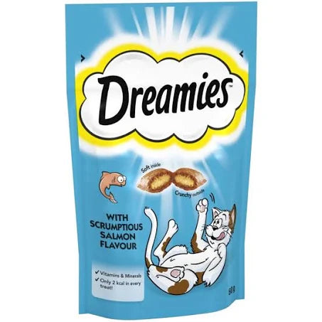 Dreamies range of cat treats are pockets of irresistible taste. Crunchy on the outside with an irresistible soft inside All it takes is a shake - Just shake the pouch and see your cat come running for the irresistible taste and texture of Dreamies Cat Treats, a reward to bring out the best side of your furry best friend Enhance all the playful moments you share with your feline friend with these dual-texture biscuits that have an enticingly crunchy outside and a soft inside that cats go crazy for These tasty treats are packed full of yummy things cats love and even contain vitamins and minerals, so you can be as happy to give them as your cat is to receive them Only 2 calories in each treat