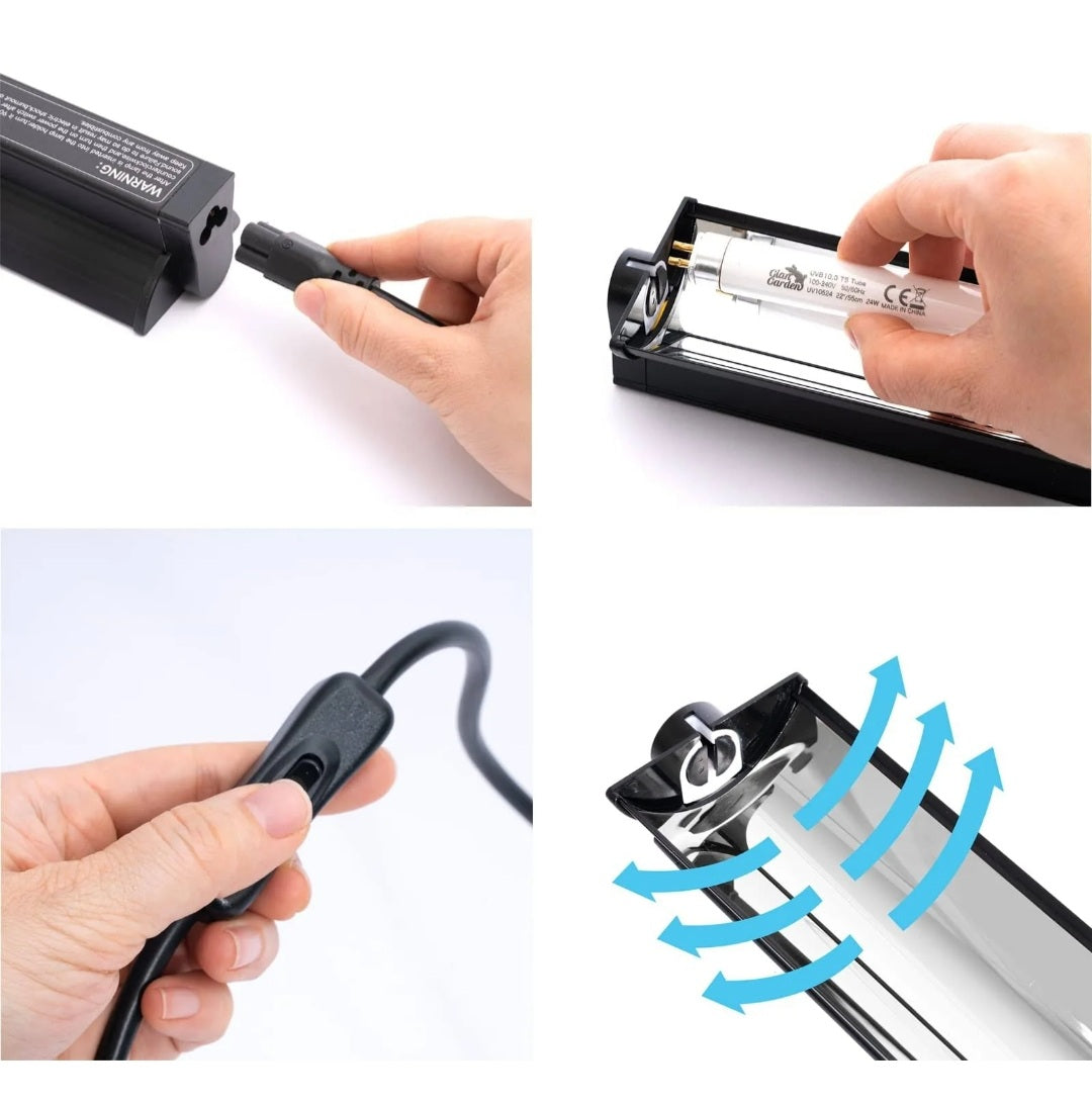 - Easy loading and unloading Giangarden reptile uvb light fixture with bulb is equipped with detailed assembly and disassembly instructions. If you have any questions, please consult our customer service. We will answer your questions in detail.