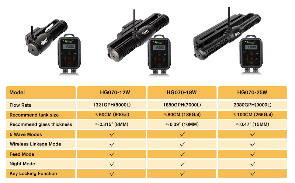 hygger cross flow wave pump generates soft waves and the waves are spread 360 degrees for freshwater and reef aquariums up to 265 gallons. It creates a water flow similar to the ocean and activates the water in the entire tank, eliminates dead spots, and creates a beautiful fish gathering shape for the appealing fish tank view.