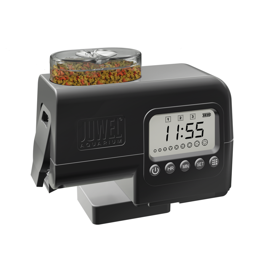The SmartFeed is the premium automatic feeder for granulate and flake feed with an extended range of functions. Using the right mounting support, it can be fitted particularly simply and quickly to any JUWEL aquarium.