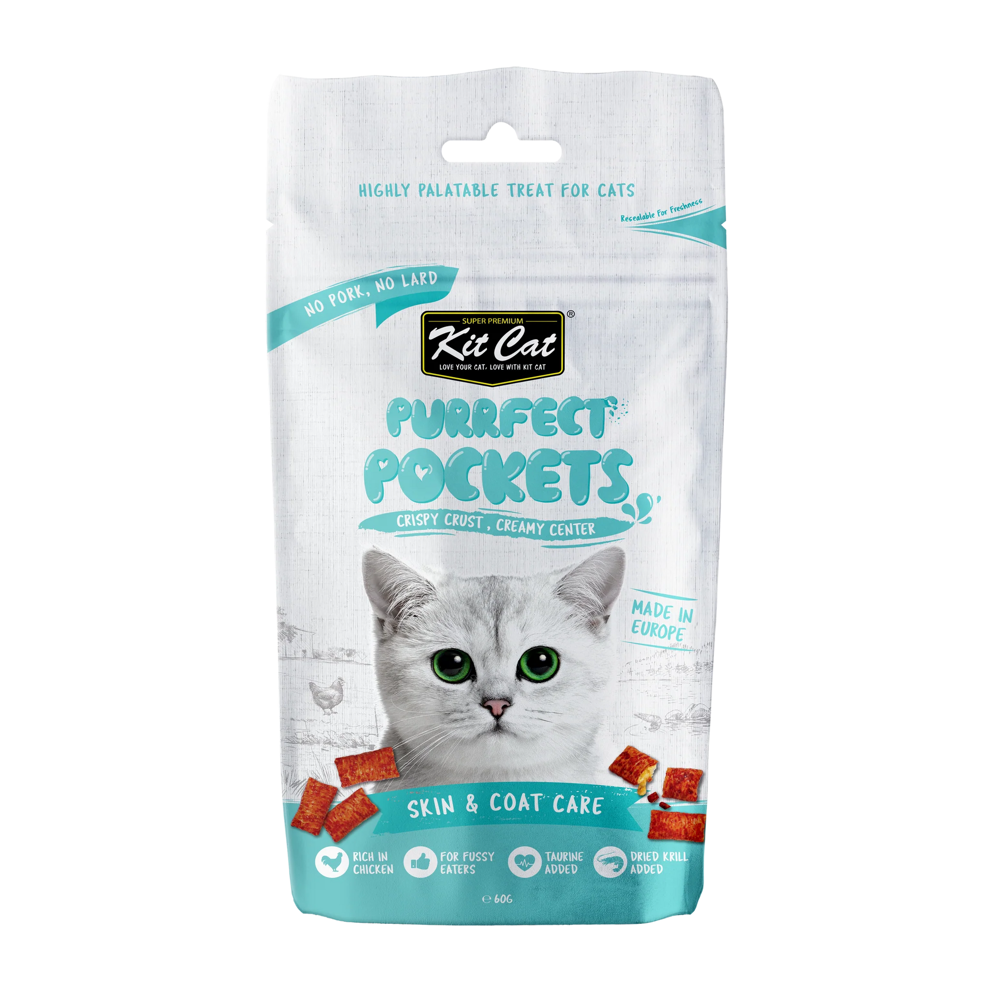 Pamper your cats with Kit Cat Purrfect Pockets featuring a dual-texture treat made from