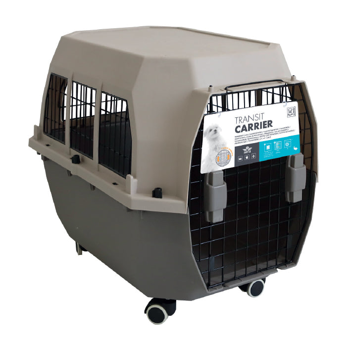 New design with metal frame window. The small comes with a handle and the medium and large with 4 wheels each. Ideal carrier when transporting your pet in a car, boat or aeroplane.