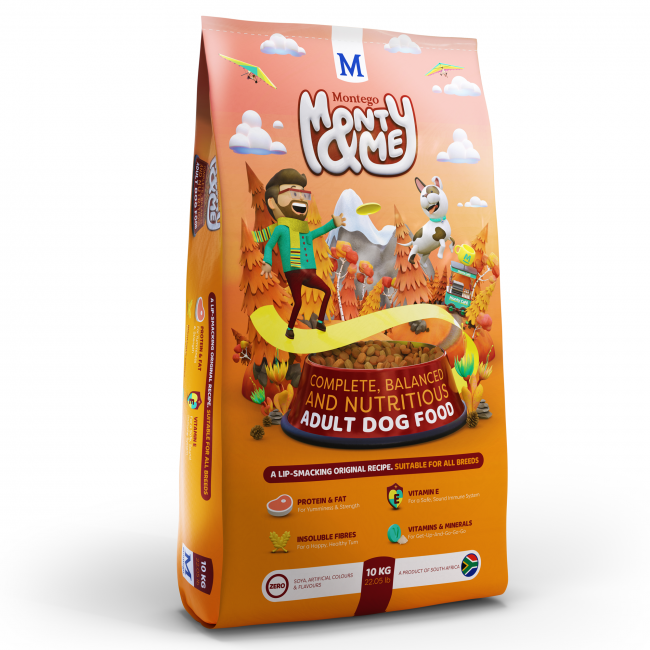 Monty & Me adult dog food will meet the stringent standards set by all Montego products. Montego recipes are specifically aimed at South African dogs and their unique dietary requirements. The food contains fine raw materials that are cooked in Montego’s world-class kitchen. The result? Monty & Me is crunchy and tasty, with all the necessary protein, anti-oxidants, prebiotic fiber and omega 6. Be sure to support your adult dog with food that will improve his digestion, and help his coat to shine.