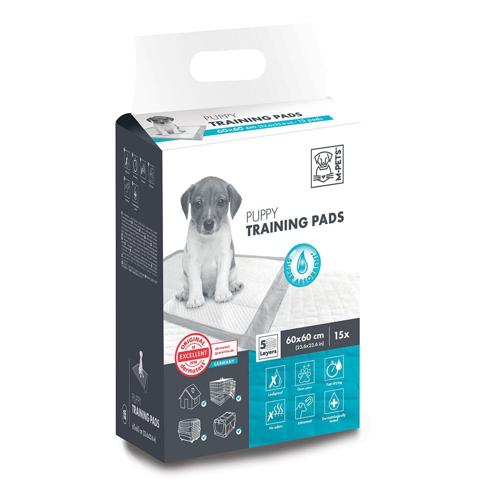 M-Pets Puppy Training Pads are available in packs of 15, 30, 50 or 100.