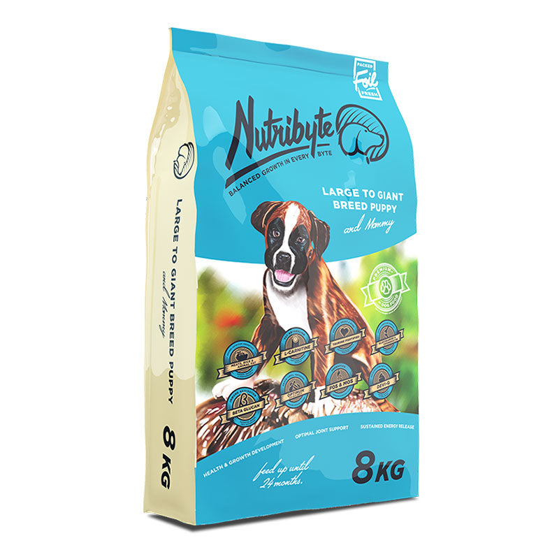 By using exclusively imported protein sources and higher levels of rice, Nutribyte Large to Giant Breed Puppy diet can truly offer balanced growth in every Byte!