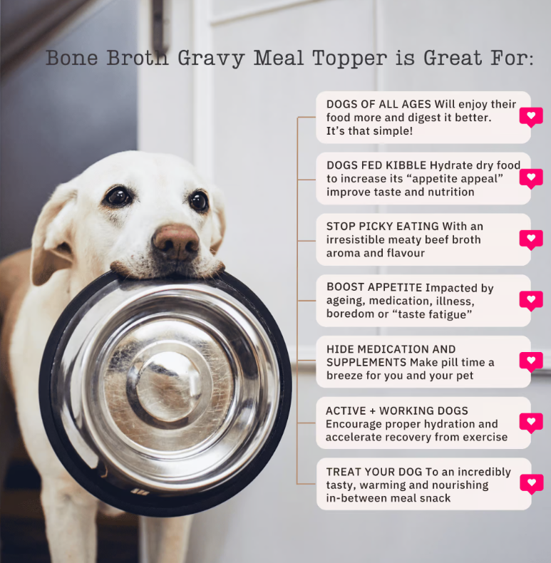 Unleash a world of nutrition and flavour with our delicious dog gravy meal topper!
