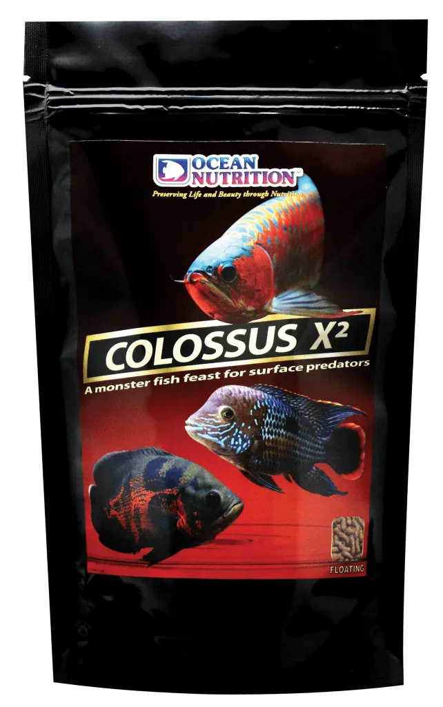 These nutrient-dense, fast-moist-absorbing floating sticks designed to satisfy the big appetites of large carnivorous aquarium fish (like Arowana, large Cichlids, Oscars,…), ensure a solid growth, sparkling health and vivid colors. Generously packed with fresh marine proteins for superior digestibility and increased palatability. These stable extruded sticks maintain their shape, prevent water pollution and keep the aquarium clean. Upgrade your aquarium care with Colossus X² and watch your fish thrive like never before!