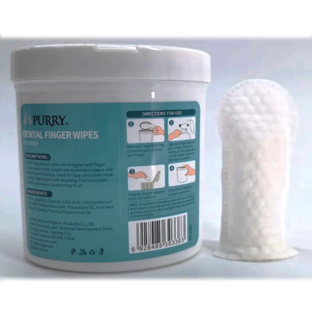 Looking for a quick and fun way to keep your dog’s dental hygiene in check? Purry Dental Finger Wipes are your new best buddy. These handy dog dental wipes help maintain oral health by cleaning teeth and gums, reducing plaque, and fighting bad breath, all while featuring a refreshing Peppermint Oil and Aloe Vera that your dog will love. Say goodbye to dental care struggles and hello to a routine your furry friend will actually enjoy!