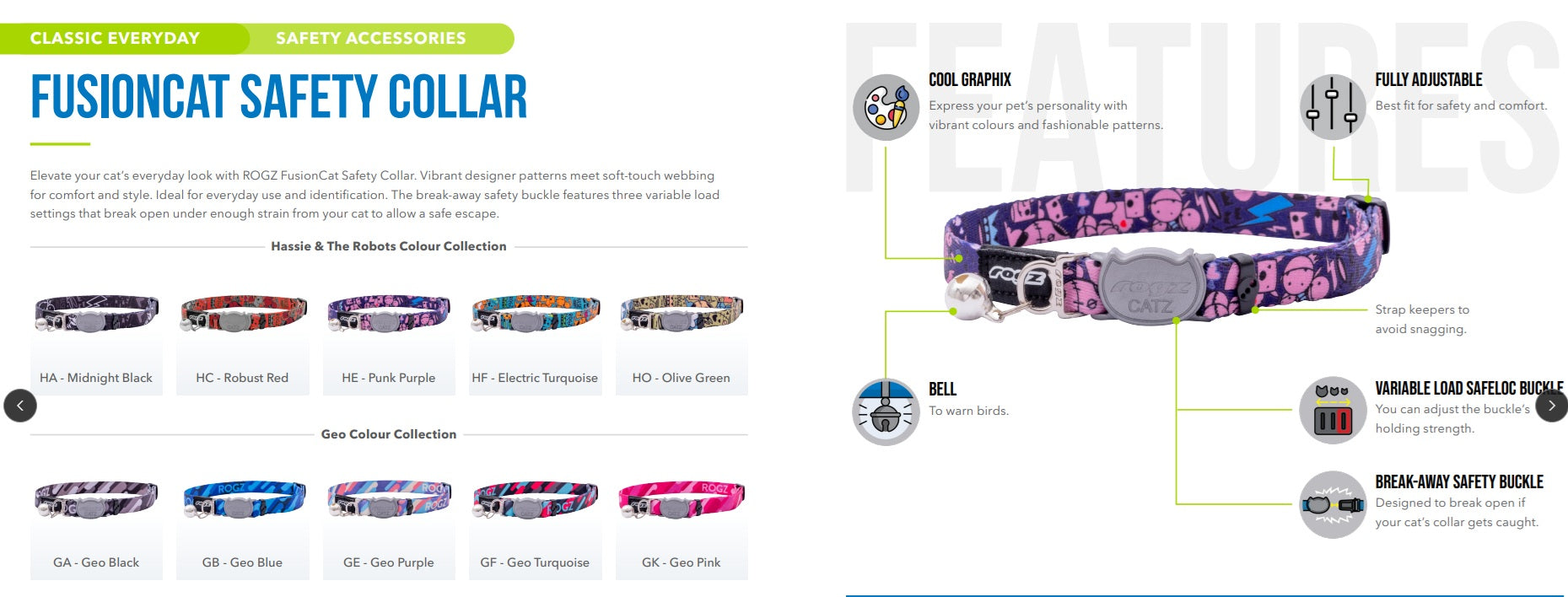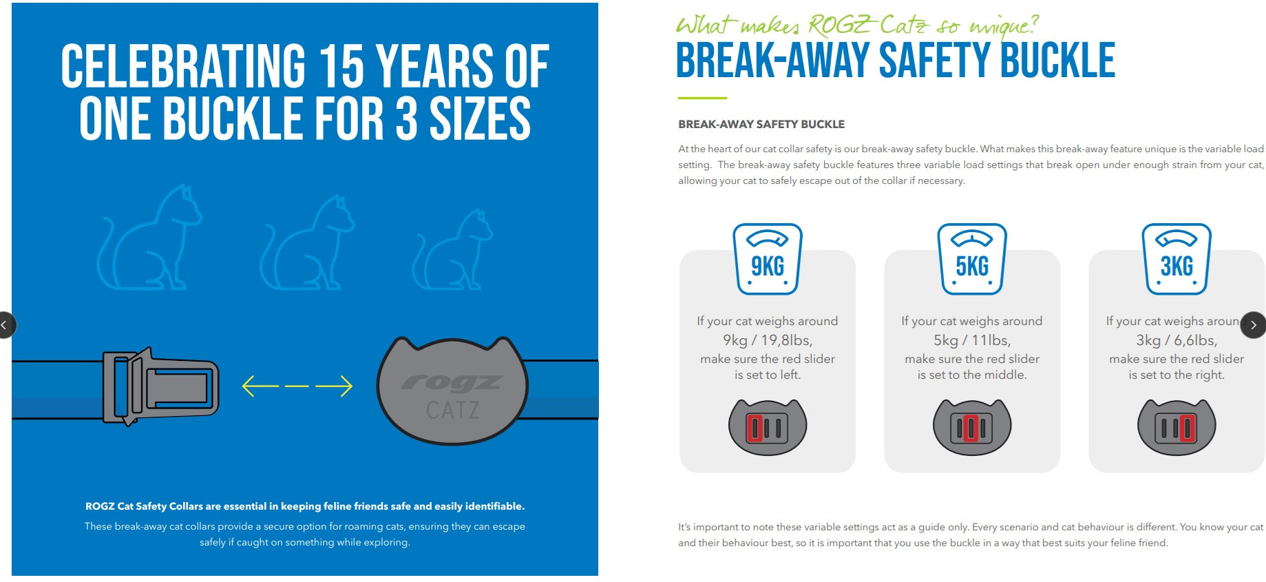 At the heart of our cat collar safety is our break-away safety buckle. What makes this break-away feature unique is the variable load