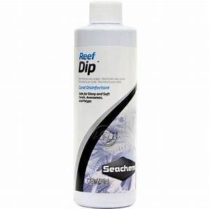 Use only in a dip container and not in the aquarium. Remove 4 L (1 gallon) of water from the source aquarium to a container suitable for dipping. Add 5 mL (1 capful) of Reef Dip™ and mix. Place coral specimen in dip for 5–10 minutes, depending on severity of problem. In very severe cases, a double dose may be used. With clear and accessible lesions, dip concentrate may be painted on lesions directly before placing in dip. Observe animals during treatment for evidence of adverse reactions such as excessive sliming. Prepared dip solution may be used for up to a day, but should then be discarded.