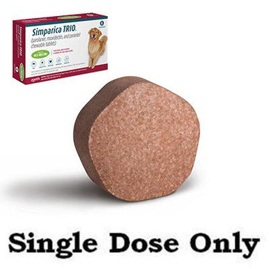 Simparica Trio is suitable for dogs from 8 weeks old and from 1,25kg. It should not be given to pregnant or lactating dogs or dogs intended for breeding
