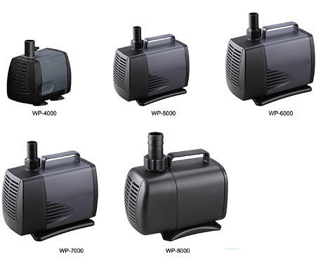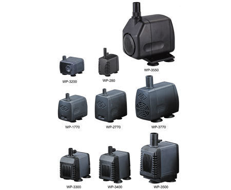 WP-3200 water pump 5W 300L/H 0.6m size:4.5*4*3.5cm WP-3300 water pump 12W 600L/H 1m size:4.5*4*3.5cm WP-3400 water pump 15W 880L/H 1.2m size:6.7 *4.7*4.5cm WP-3500 water pump 25W 1200L/H 1.5m size:9*9*5.5cm WP-4000 water pump 40W 2000L/H 2m size:7*12*11.5 WP-5000 water pump 60W 3000L/H 3m size:8*14.5*12.5 WP-6000 water pump 85W 4000L/H 4m size:19*13*14 WP-7000 water pump 105W 5000L/H 5m size:19*13*14 WP-8000 water pump 135W 6000L/H 5.5m size:19*13*14 INSIDE