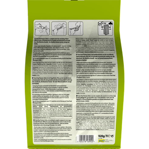 Complete food mix for all pond fish comprising three different sticks for varied nutrition. The optimal nutrient composition provides all-round, biologically balanced nutrition.
