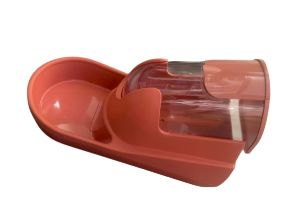This pet food dispenser is designed for small dogs, providing a convenient way to keep mealtime effortless. Available in grey and pinkish salmon, it features a sleek acrylic reservoir with a flap for easy refilling. The food smoothly dispenses through an opening into a bowl, ensuring a steady supply for your pet.