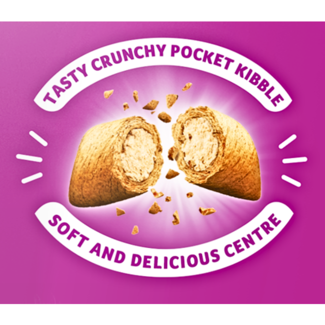 - Delicious vegetable-based kibbles and crunchy pockets for your cat to enjoy